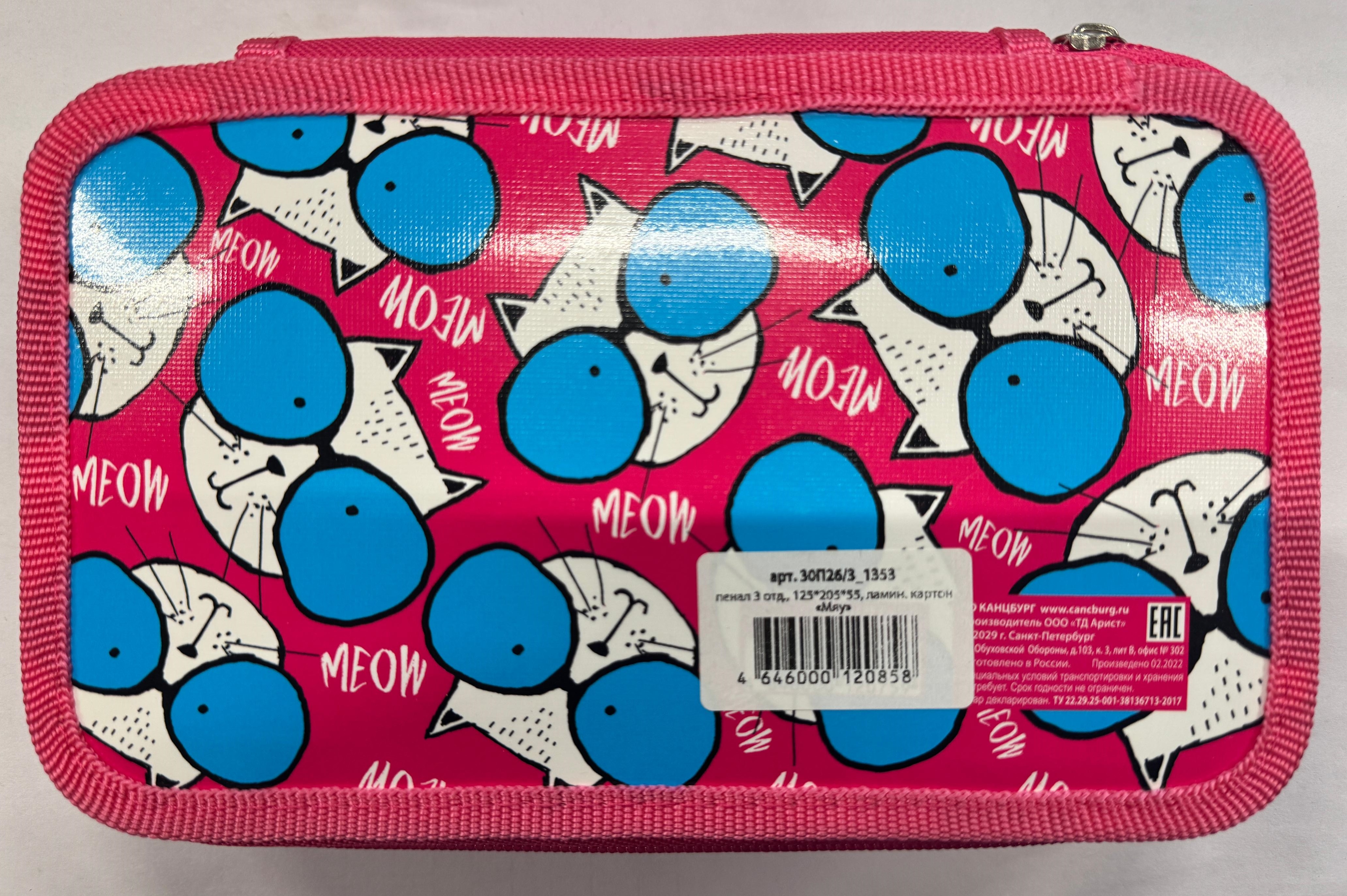 Удобный КАРКАСНЫЙ пенал для школьных канцелярских принадлежностей с 3-мя отделениями. УВЕЛИЧЕННЫЙ Размер 125 х 205 х 55 мм (помещается карандаш с резинкой).