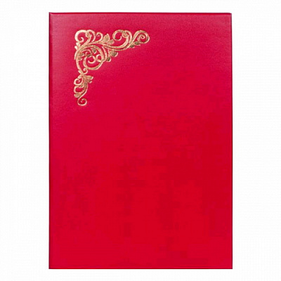 Золотое тиснение фольгой на лицевой стороне папки. Рассчитана на 280-300 листов плотностью 80г/кв.м.