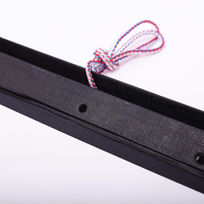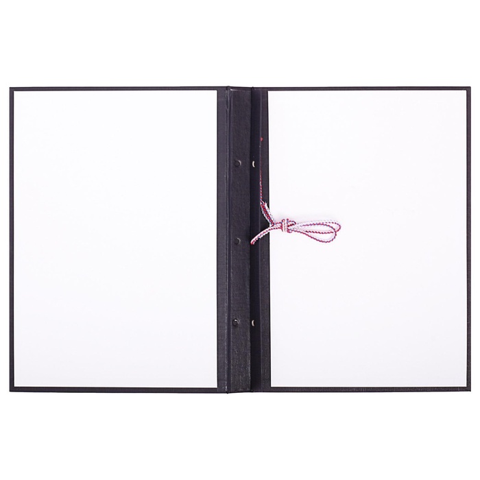 Внутри расположена вставка с тремя отверстиями и шнуром для сшивания листов...