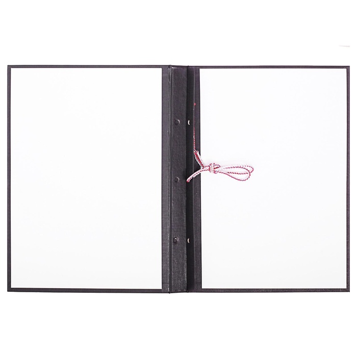 Внутри расположена вставка с тремя отверстиями и шнуром для сшивания листов...
