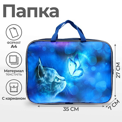 Папка текстильная на молнии с ручками, формат A4+. Размер 270 х 70 х 350 мм.
