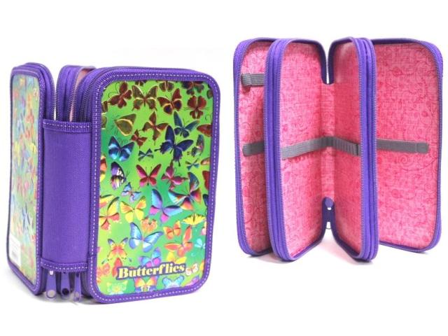 Удобный пенал для школьных канцелярских принадлежностей с 3-мя отделениями. УВЕЛИЧЕННЫЙ Размер 125 х 205 х 55 мм.