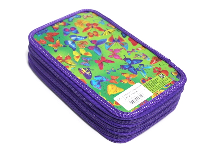Внутри пенала прочно пришиты резинки. Внутренняя часть пенала выполнена из картона с ламинацией.