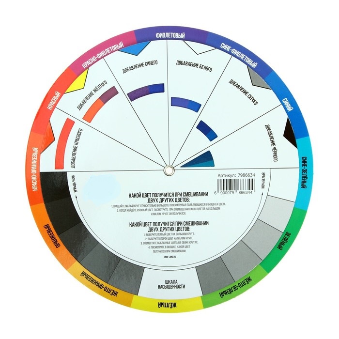 Цветовой круг изготовлен из плотного ламинированного картона и имеет 2 стороны.