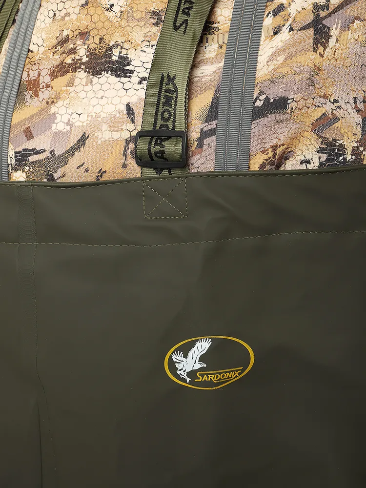 Утеплённые высокие бахилы для зимней охоты и рыбалки. Трёхслойный верх (оксфорд, поролон, спанбонд) и фольгированный утепляющий чулок обеспечивают тепло и сухость в холодную погоду. Подошва из термоэластопласта сохраняет гибкость на морозе.