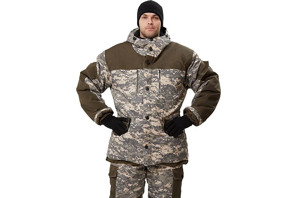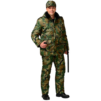 Зимний костюм мужской для охранников в камуфляжном сером цвете предназначен для защиты от холода и внешних загрязнений. Изготовлен из высококачественных материалов, таких как смесовая ткань с утеплителем, для обеспечения комфорта и надежности в условиях низких температур.