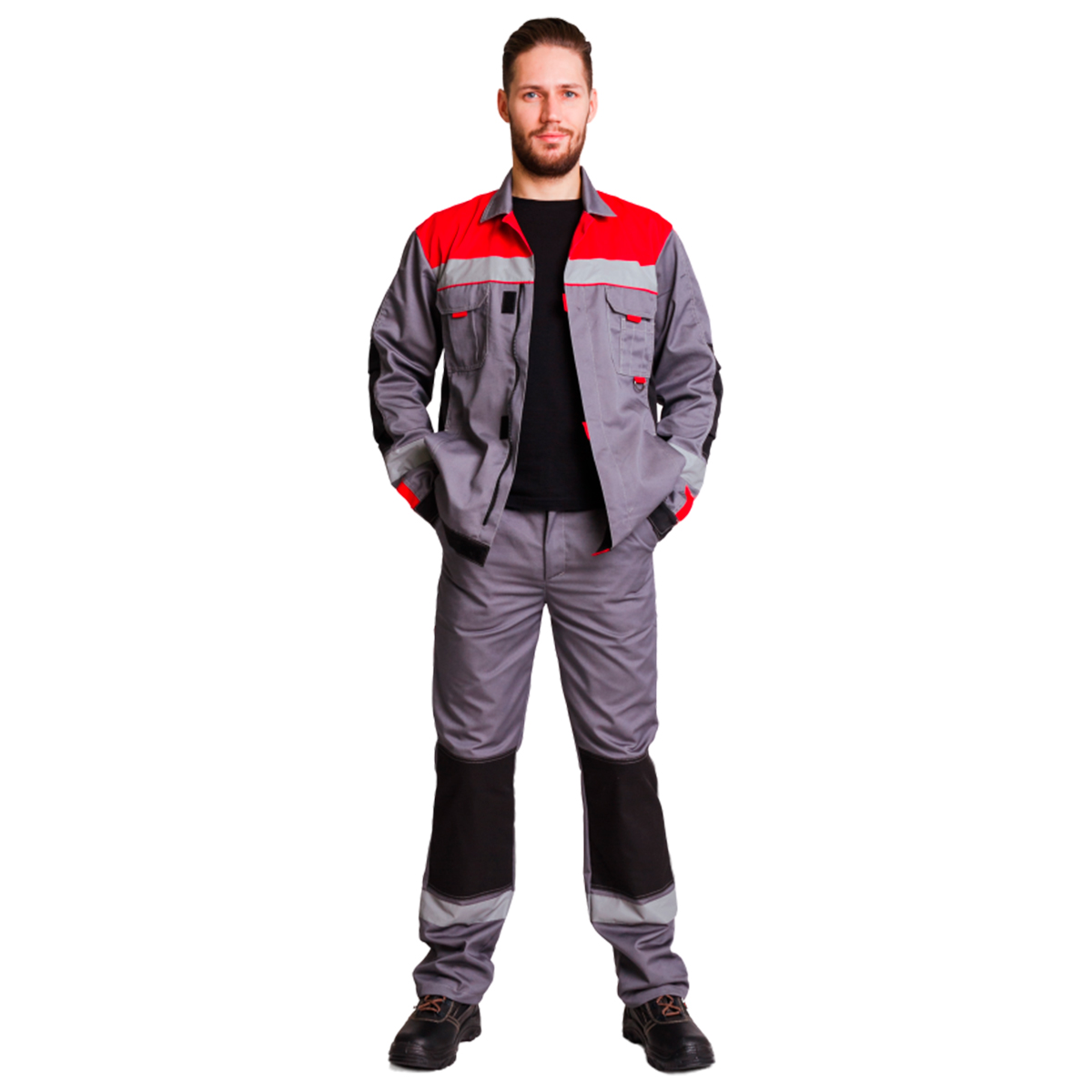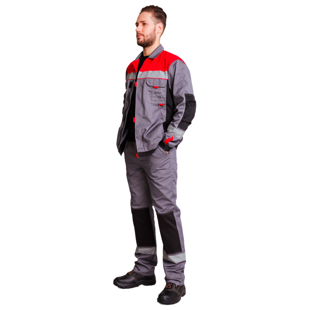 Костюм летний мужской Антей серый/черный/красный куртка+брюки (р. 44-46/182-188)