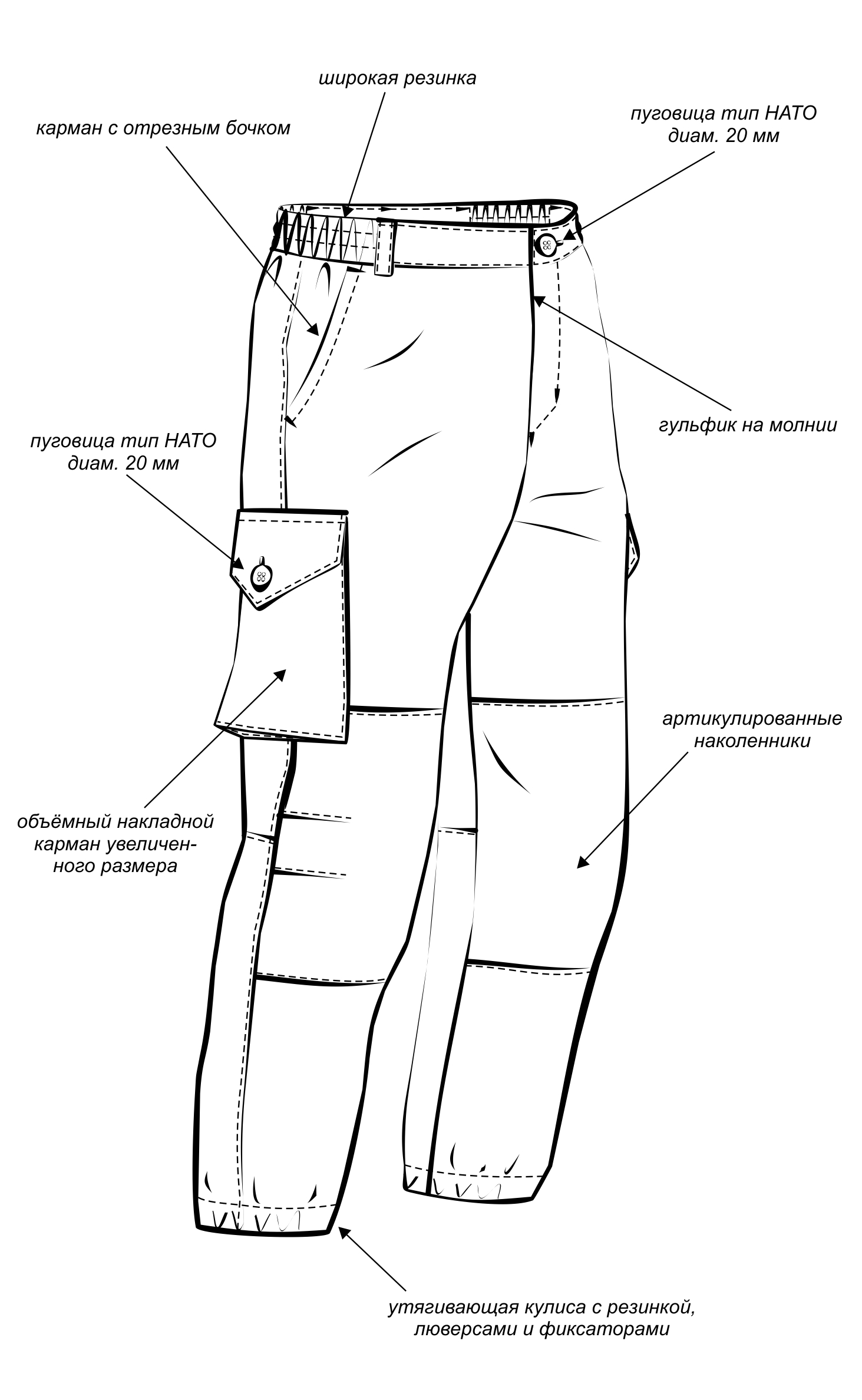 — брюки прямые на притачном поясе с частичной фиксированной резинкой по боковым сторонам;