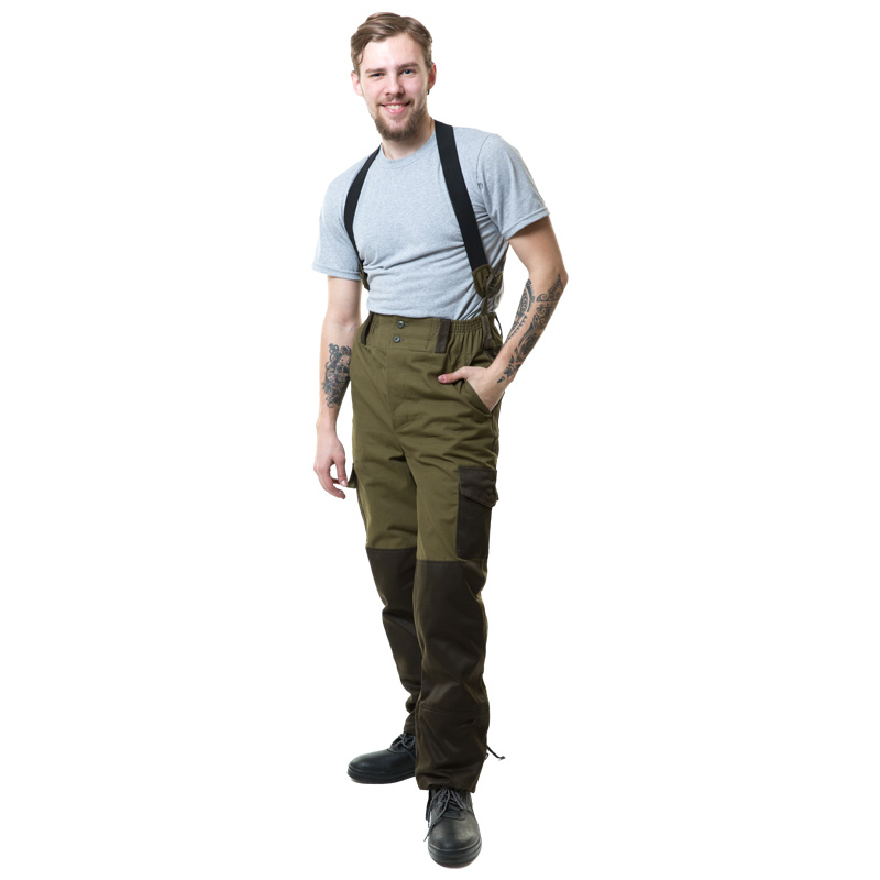 — в области коленей, на задних половинках брюк в области сидения – усиливающие накладки;