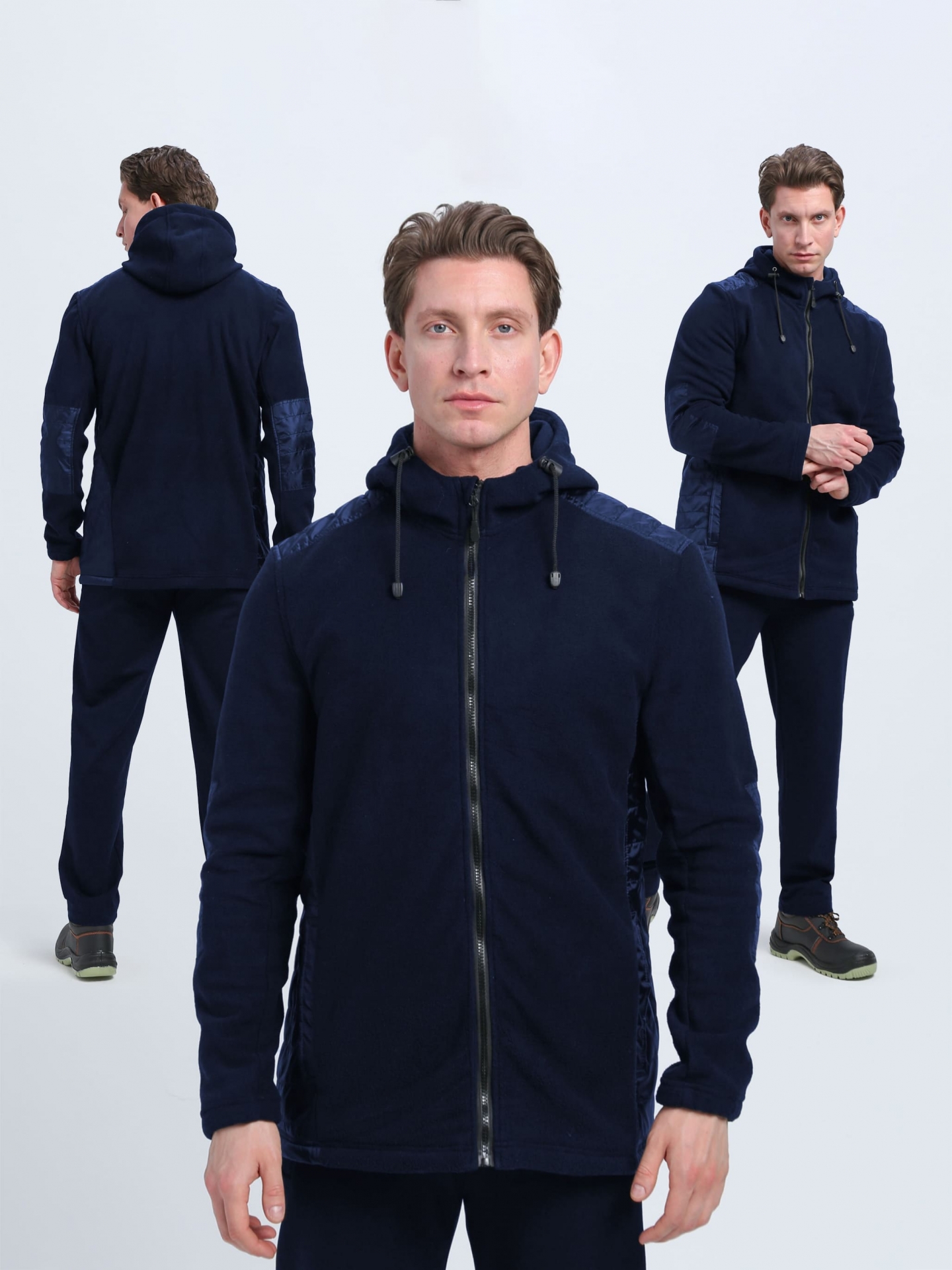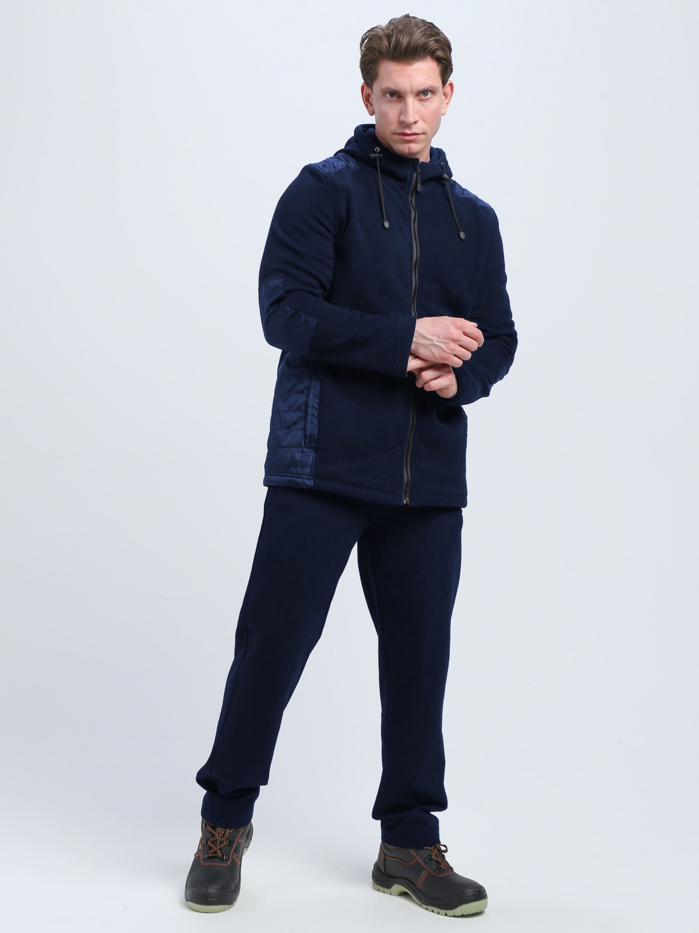 Конструкция: Прямого силуэта с капюшоном из трех частей, центральная застежка на молнию с защитной планкой с перегибом, усилительные накладки из отделочной ткани на плечах/боках простроченные параллельными строчками, настроченная усилительная накладка на локтевой части рукавов из отделочной ткани с параллельными строчками, низ рукава с эластичной тесьмой в подгибку.