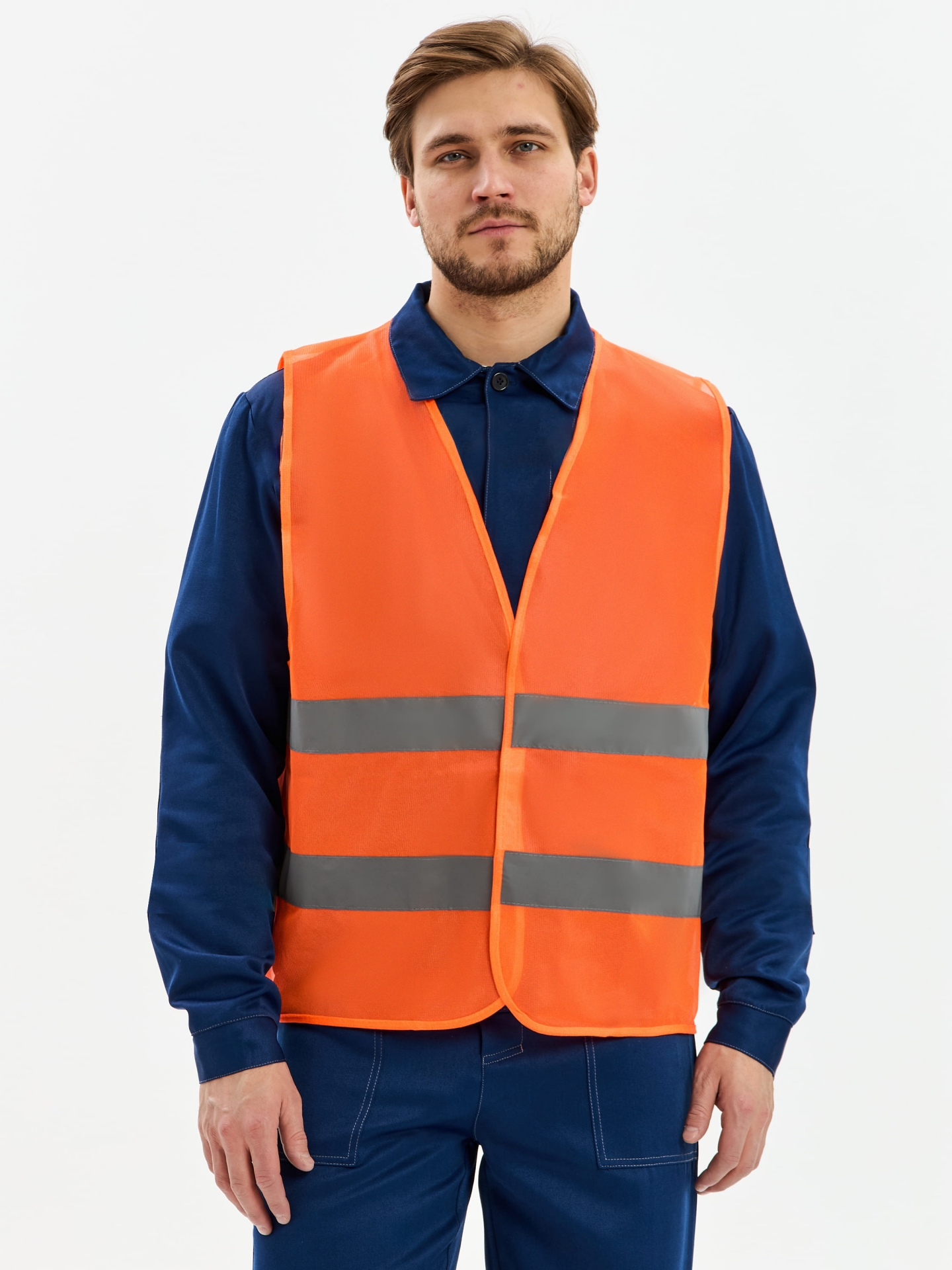 Жилет сигнальный 2 СОП, оранжевый — обеспечивает высокую видимость и безопасность для работников в условиях повышенной опасности и плохой освещенности.