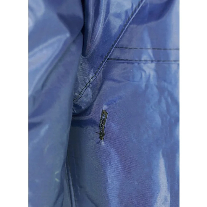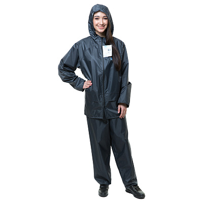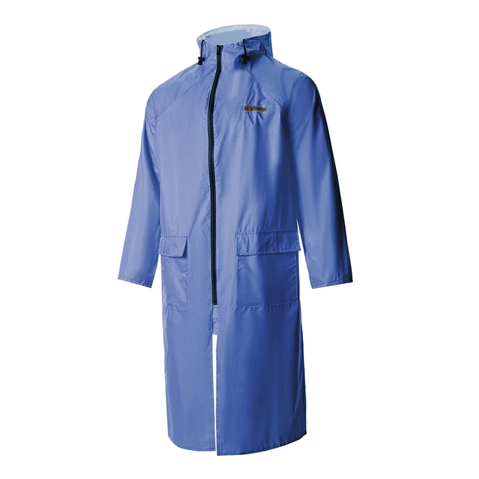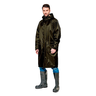 — плащ с застёжкой на молнии, клапаном против ветра, капюшоном, двумя карманами с клапанами, манжетами на рукавах;