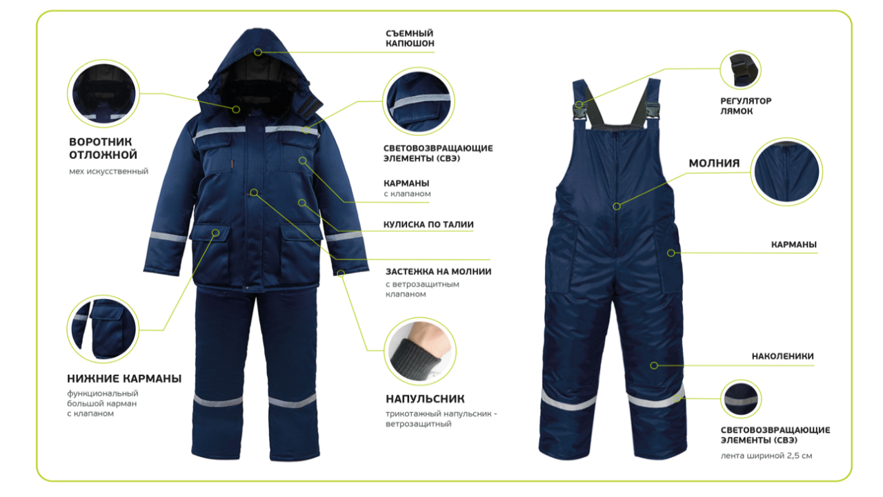 Назначение: Для работы в строительстве, на производстве, в ЖКХ и других отраслях, требующих защиты от холода, ветра и общих производственных загрязнений в зимний период.