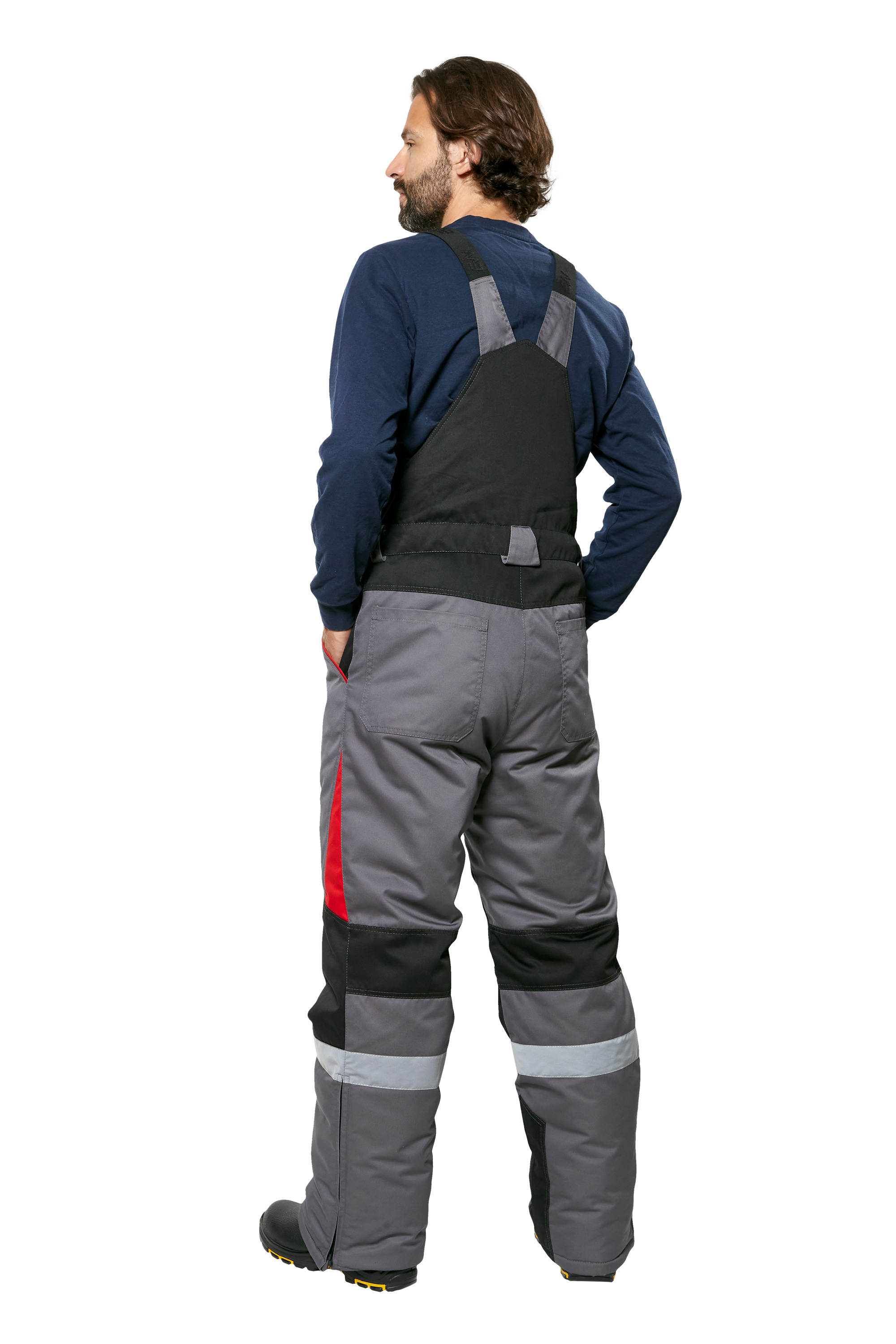 - Визуальные элементы защиты: световозвращающие полосы шириной 50 мм в нижней части брюк.