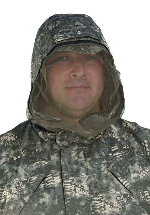 • Специальный капюшон сложной конструкции предотвращает проникновение насекомых под одежду.