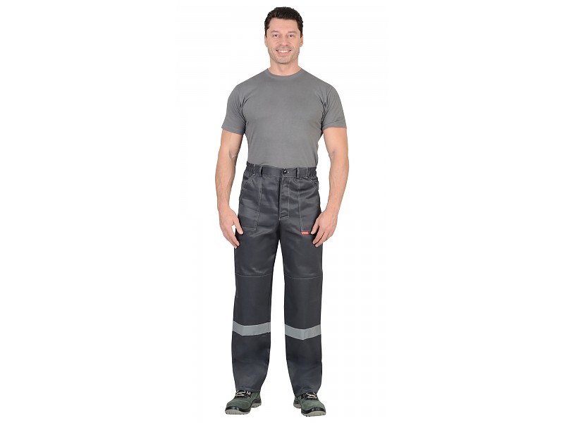 — брюки прямые на поясе, накладные карманы, застёжка-гульфик на пуговицах, усиление в области колен;