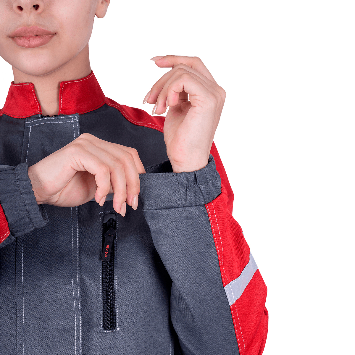 Костюм женский "Мираж" в белом и светло-сером цветах выполнен из ткани "Оптима", обеспечивающей комфорт и долговечность при длительном ношении. Этот костюм сочетает элегантность и функциональность, идеально подходя для работы в производственных и офисных условиях.