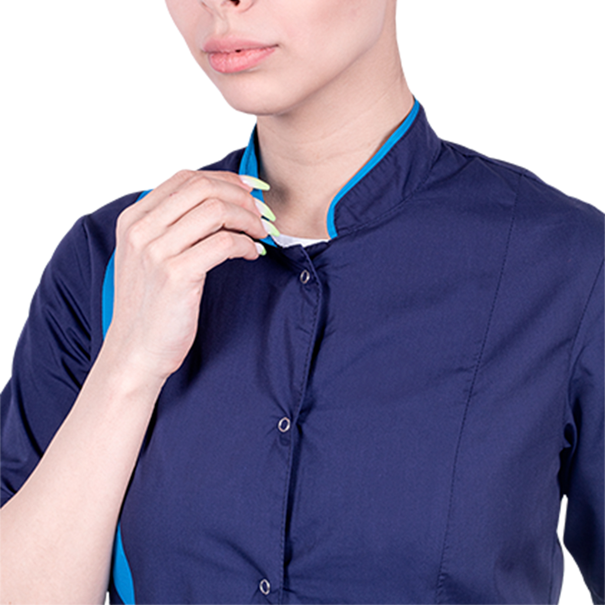 — Цвет: Васильковый оттенок сочетает практичность с профессиональным видом