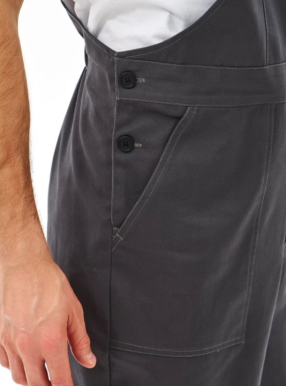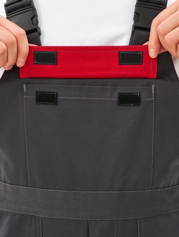 — брюки на поясе с эластичной тесьмой, застёжка-гульфик на молнии, накладные карманы, усиление в области колен, контрастная отстрочка.