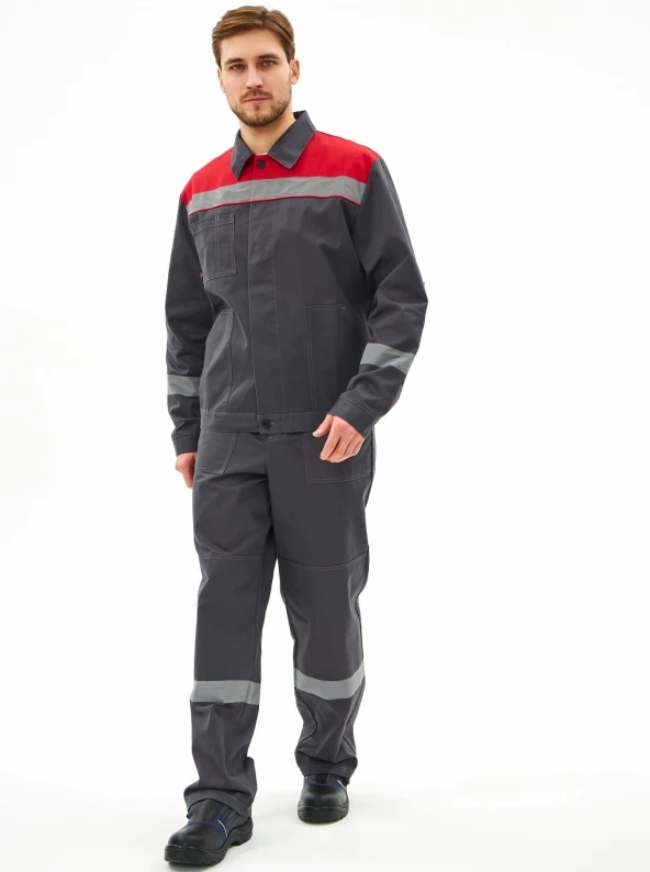 / Костюм летний мужской Темп куртка + п/комб. СОП т.серый/красный