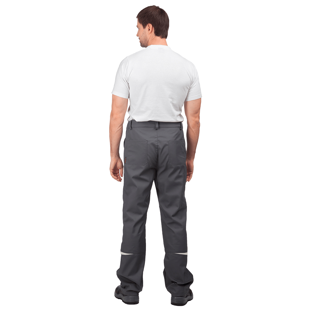— брюки на поясе с эластичной тесьмой, застёжка-гульфик на молнии, накладные карманы, усиление в области колен, контрастная отстрочка.