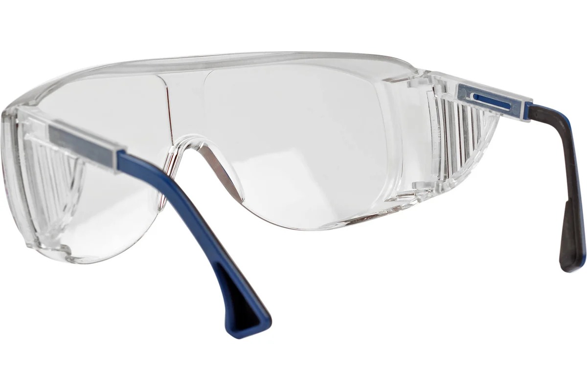 Очки UVEX Визитор с панорамным стеклом идеально подходят для пользователей, использующих корригирующие очки. Прочные линзы из поликарбоната обеспечивают защиту от летящих частиц и УФ-излучения, а форма оправы с боковыми щитками способствует непрямой вентиляции, предотвращая запотевание. Мягкие заушники и литой носоупор добавляют дополнительный комфорт, а оправа из поликарбоната, ПБТ и ТПУ гарантирует долговечность и легкость.