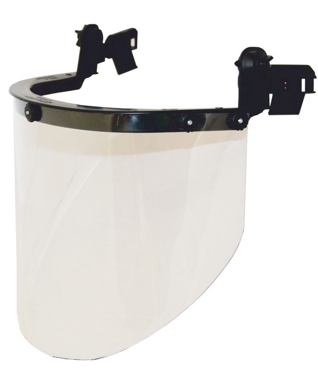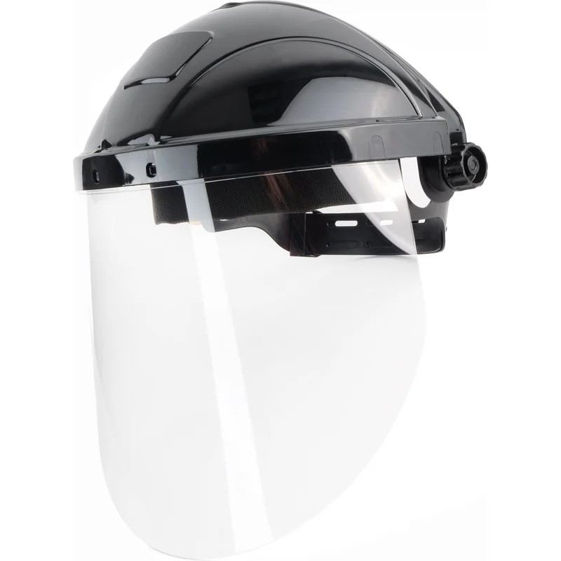 Щиток защитный лицевой для защиты от механических воздействий, повышенных температур (брызг расплавленного металла и горячих частиц). Цилиндрический экран из ударопрочного и термостойкого поликарбоната с защитой от высокоскоростных частиц со среднеэнергетическим ударом (120 м/с).