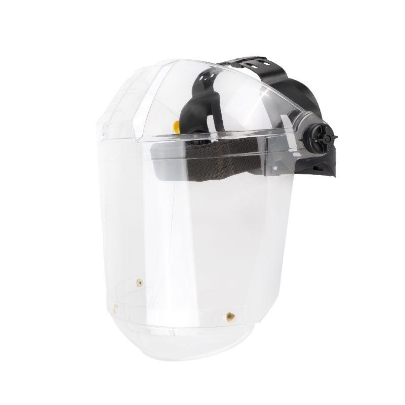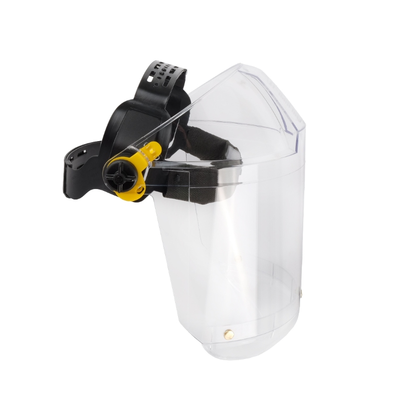 Полностью прозрачная монолитная лицевая часть из ударопрочного и термостойкого поликарбоната. Защищает от высокоскоростных летящих частиц с высокоэнергетическим ударом (не более 14,9 Дж). Наголовное крепление STANDART с мягким обтюратором. Оснащен подбородником для дополнительной защиты.