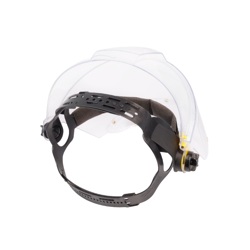 • наголовное крепление регулируется по высоте ношения (теменная часть) и размеру головы (затылочная часть). Регулировки по размеру позволяют точно подгонять и надежно фиксировать щиток на голове пользователя, исключая вероятность спадывания, особенно при использовании с головными уборами;