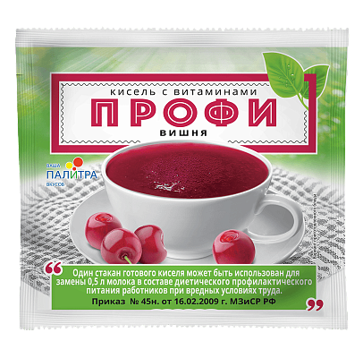 Кисели "Профи" – специализированные продукты диетического (профилактического) питания для персонала, работающего во вредных условиях, в условиях повышенной ответственности, интенсивной физической и умственной нагрузки. Могут использоваться для замены молока и пектинопрофилактики. Одна порция киселя заменяет 0,5 л молока в смену.