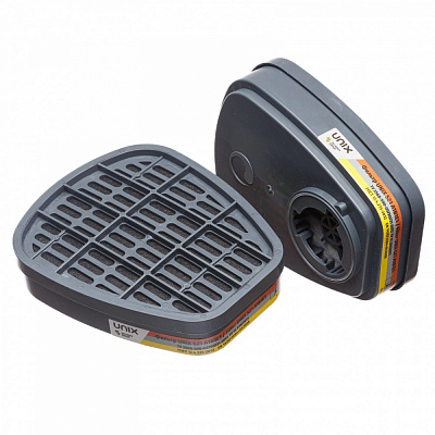 Фильтр противогазовый UNIX 521 марки А1В1Е1 предназначен для защиты от органических газов и паров с температурой кипения выше 65°С (бензол, ксилол, толуол, бензин, керосин, галоидорганические соединения, анилин, кетоны, тетраэтилсвинец, нитросоединения бензола и его гомологов и т.п.); неорганических газов и паров (хлор, фтор, бром, сероводород, арсины, фосфористый водород и т.п., за исключением...