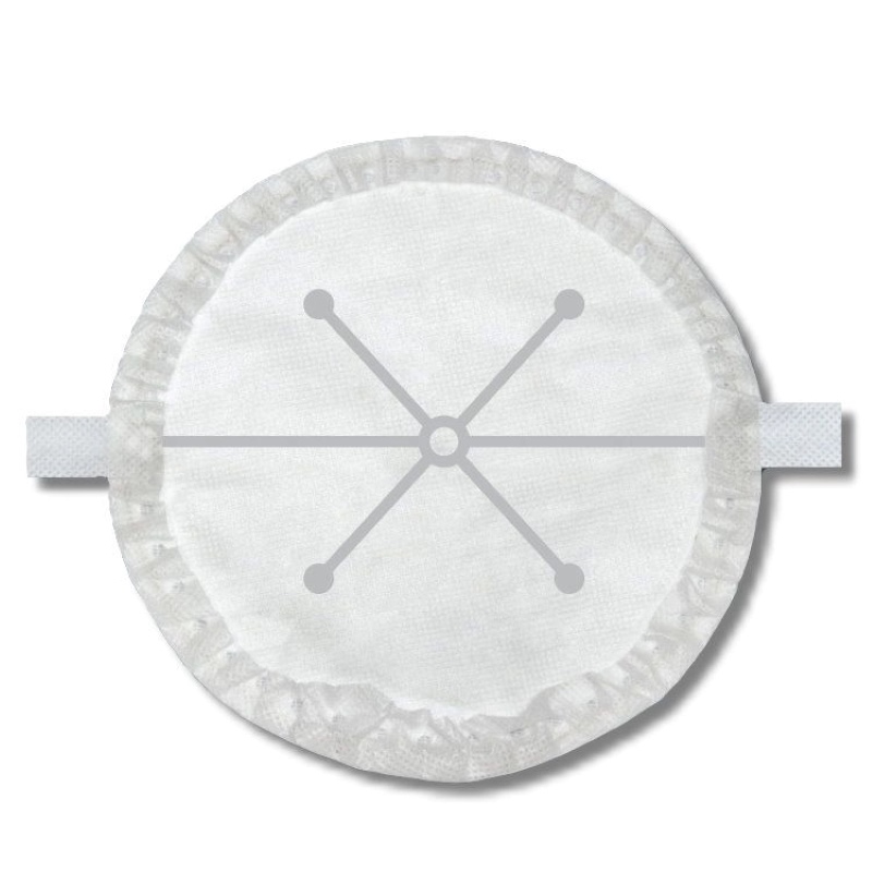 Материал представляет собой слой сверхтонких полимерных волокон, равномерно распределенных по всей площади подкладки из марли, обеспечивающий сверхтонкую очистку воздуха от мелкодисперсной пыли и аэрозолей.