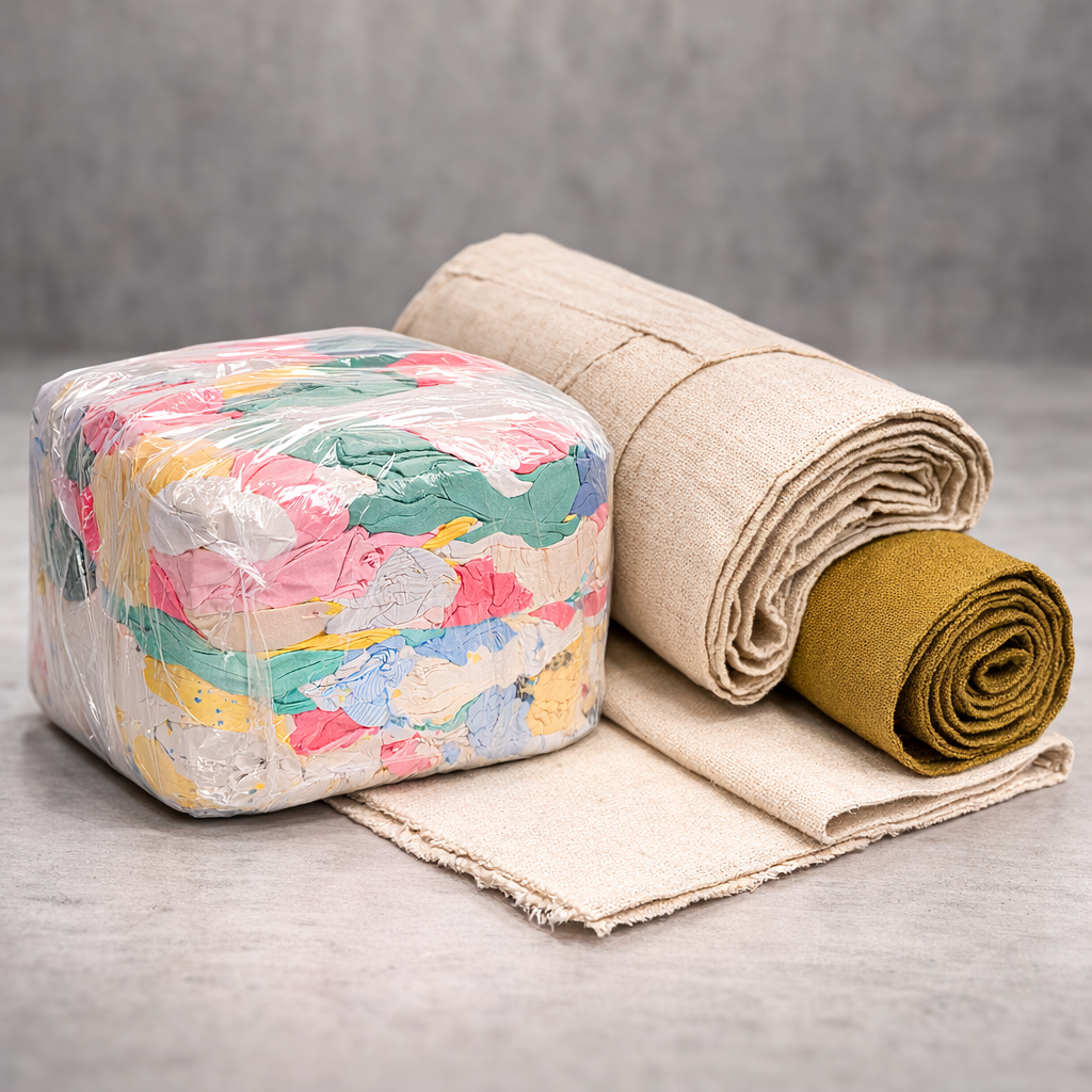 Материал: х/б грубая, не сортированная (лоскуты грубых тканей, таких как – джинса, деним, костюмная ткань и прочее в смеси с хлопчатобумажными плотными тканями. Х/Б не менее 80% + 20% синтетические ткани. Отлично подходит для мытья полов, обтира станков от масла и прочих не ответственных работ)