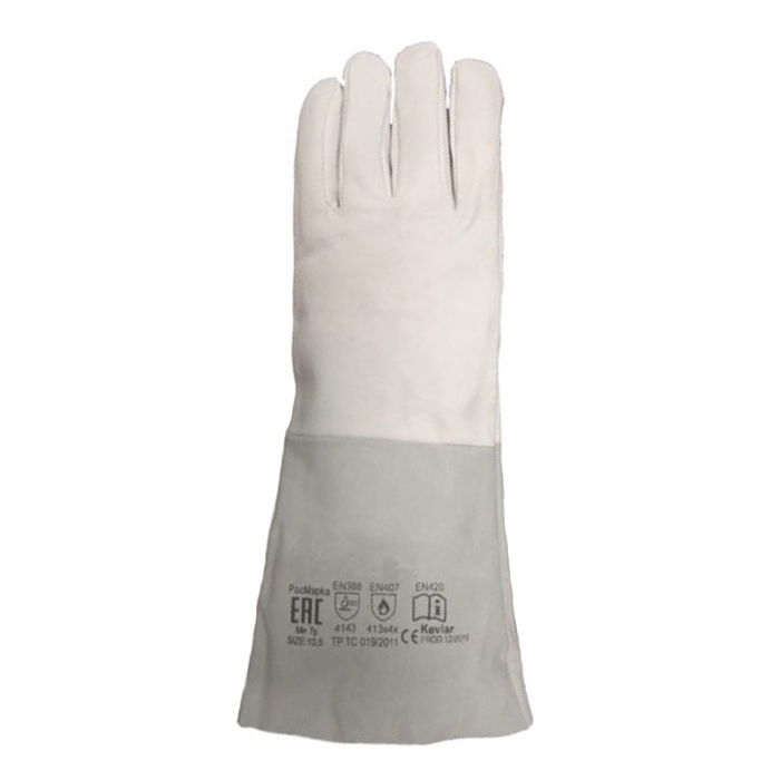 — широкая крага из спилка обеспечивает защиту рук.